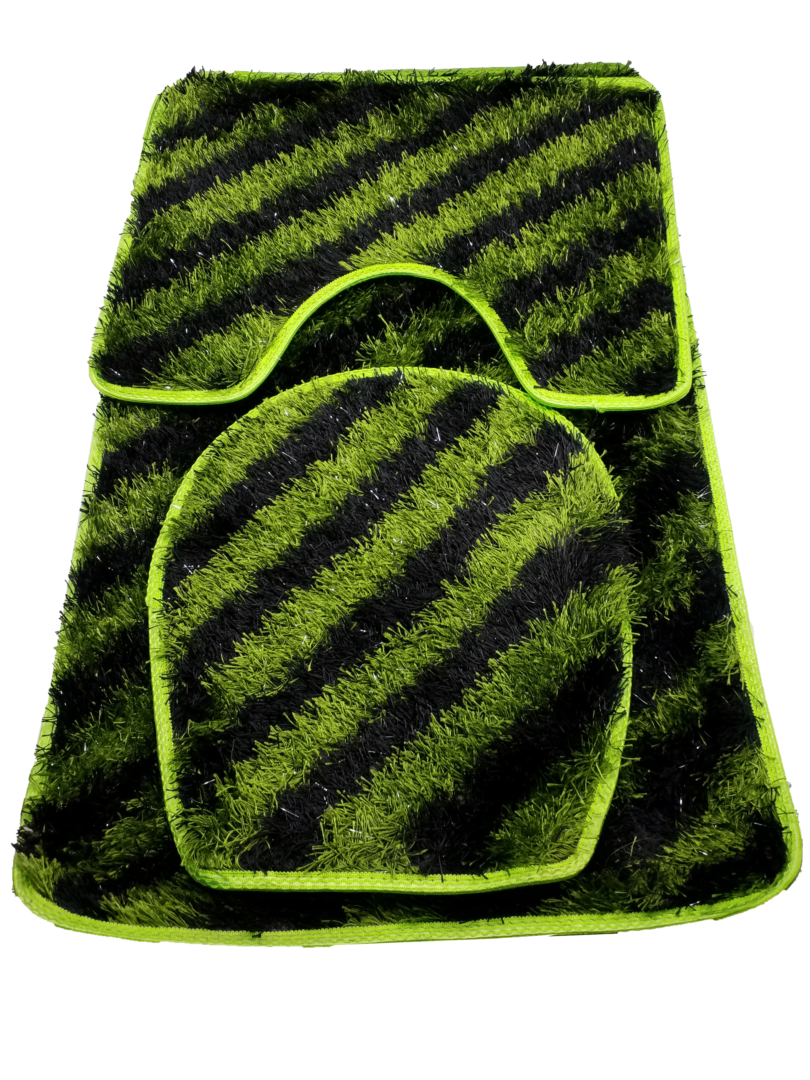 Fluffy mat for your toilet room 3 pcs one for covering toilet lid and others for flow green black color