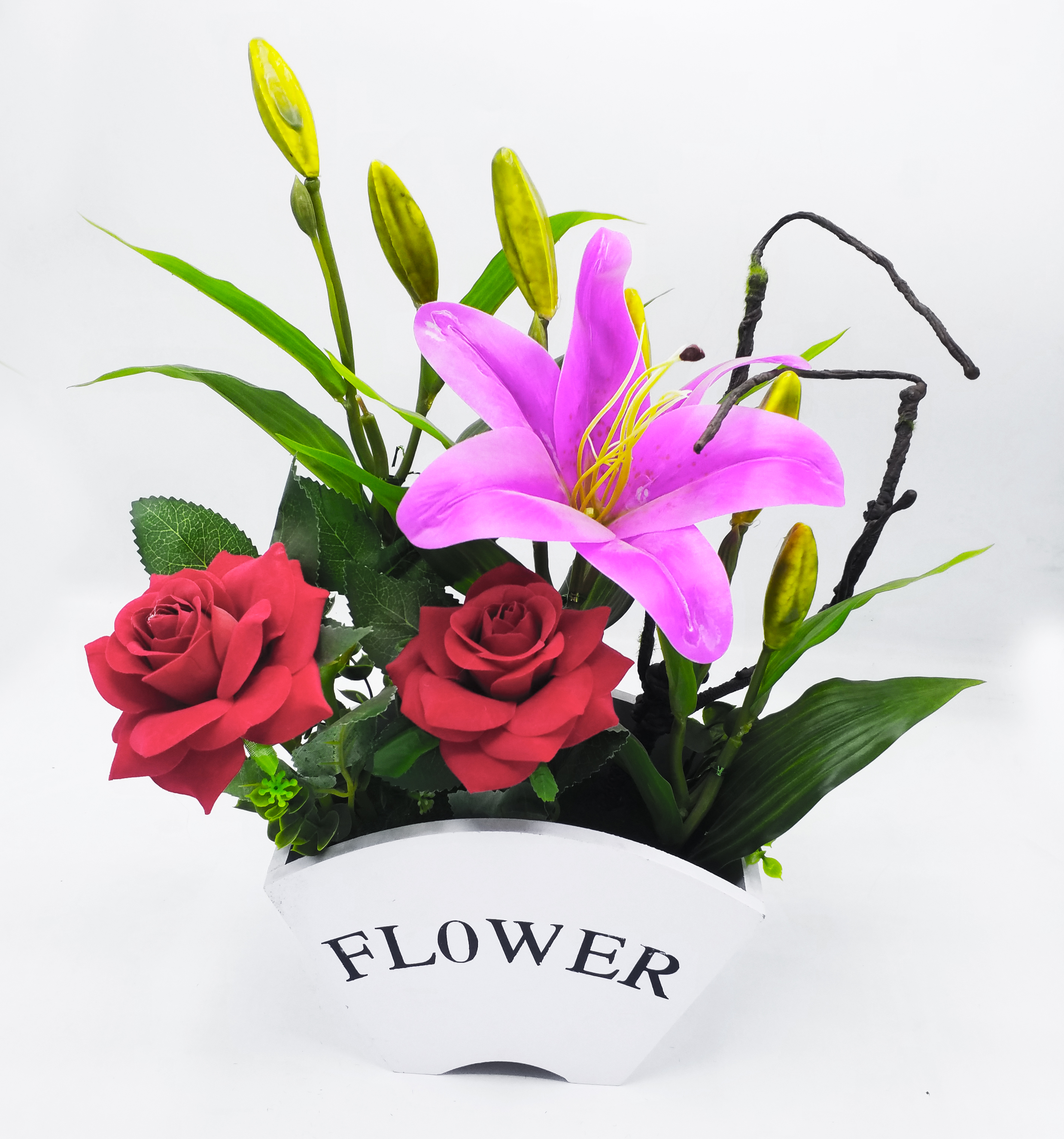 Decoration Plastic Flower with white basket