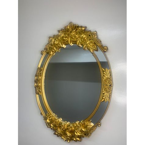Ornate Oval Wall Mirror with Golden Floral Frame