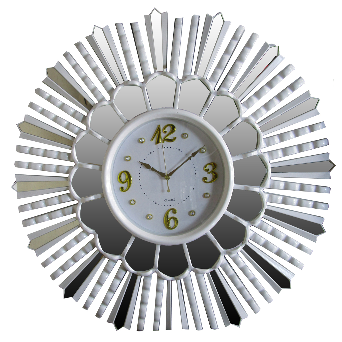 Modern Wall Clock with Mirrored Frame and Golden Numerals