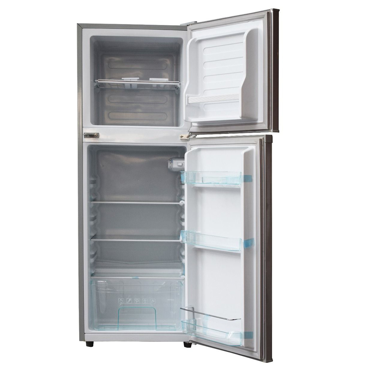 Features • 128 litre capacity • Double-door fridge • Transparent shelves