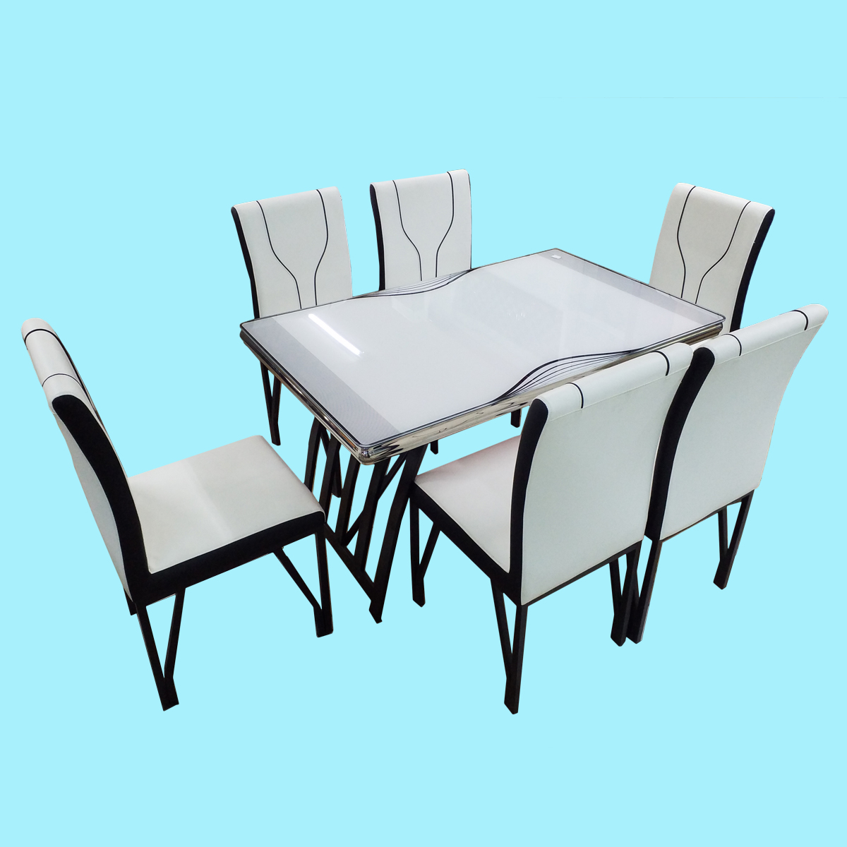 Dinning Table Black color tough glass with 6 seat N0:0352 no 0352 6 chai