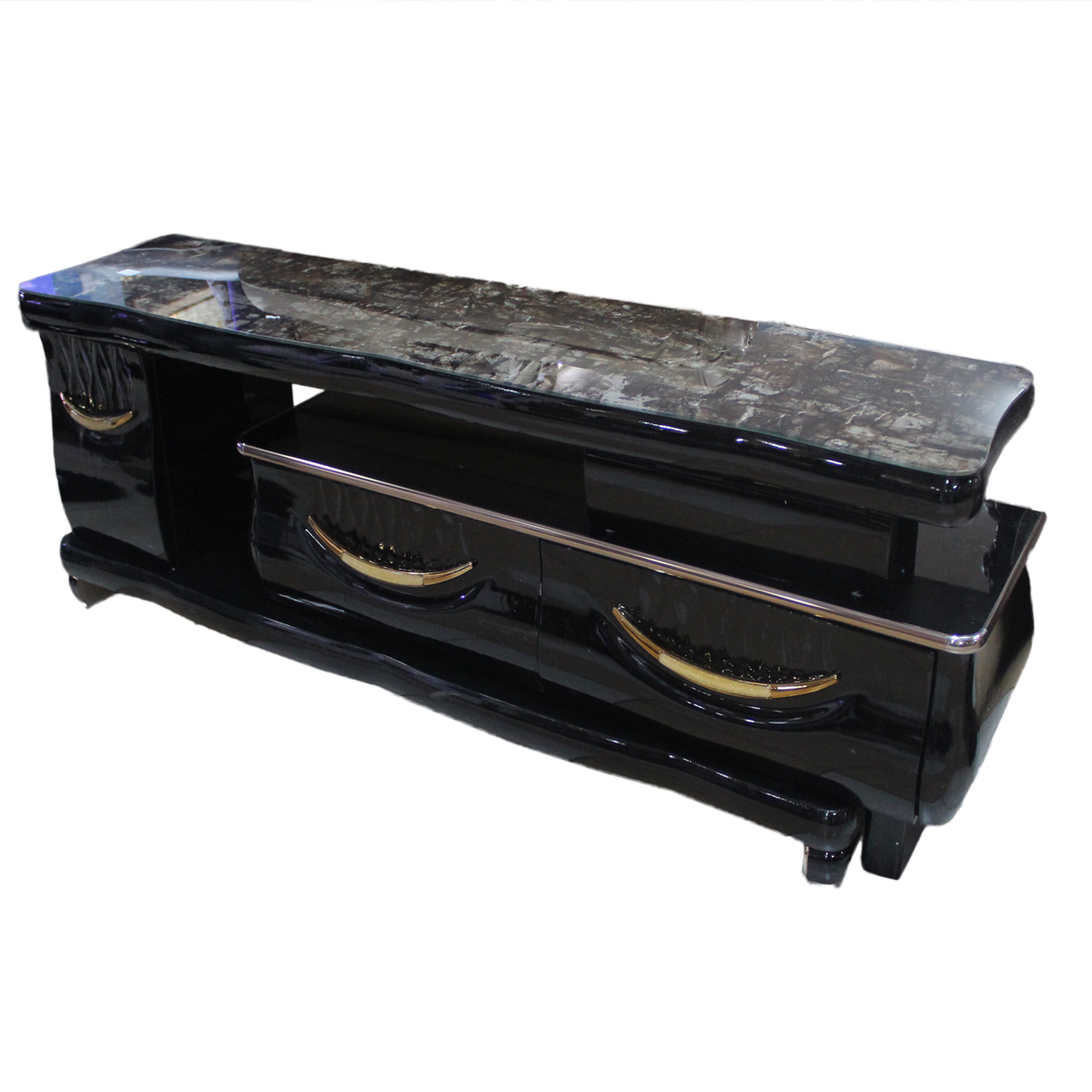 Tv stand 200 cm x40 cm x 43 cm glass top design with drawers