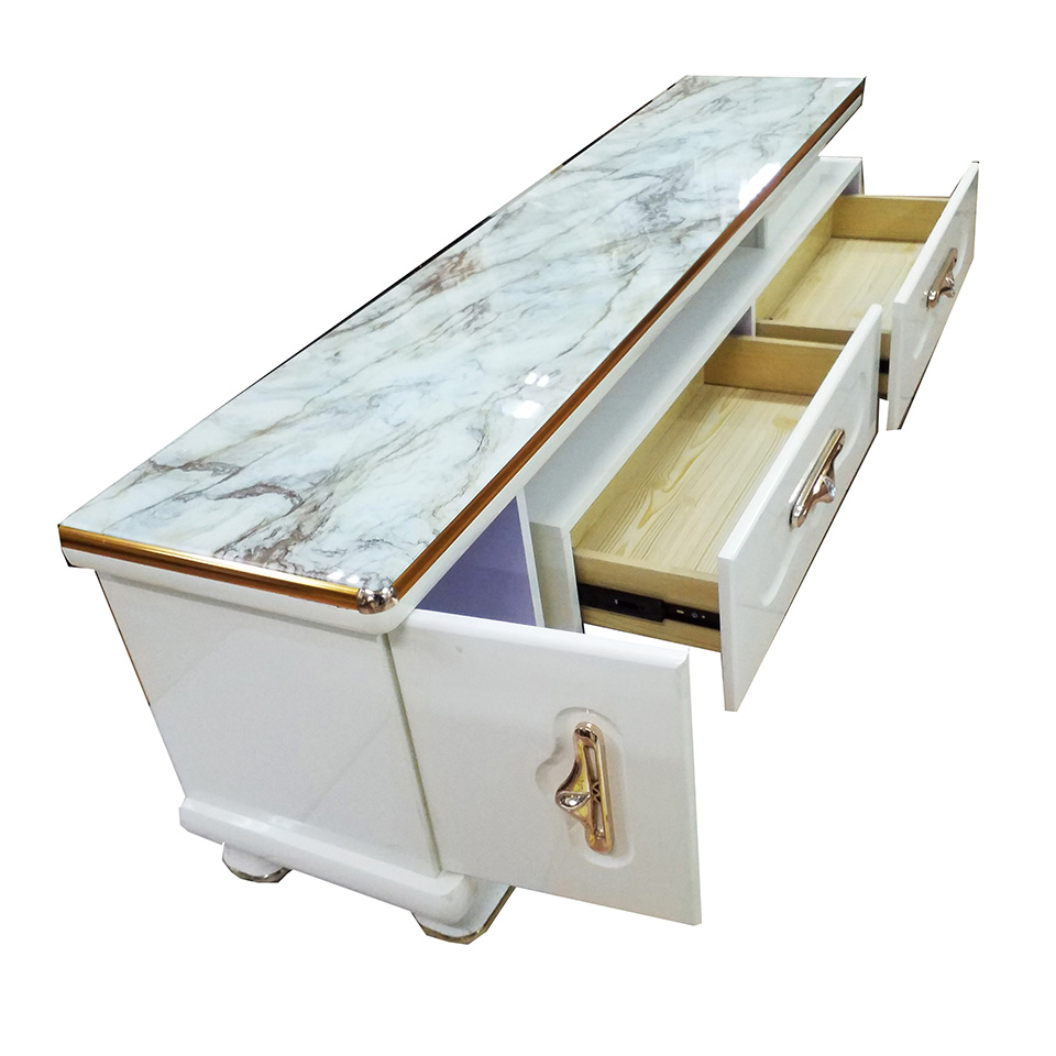 Glass top long tv rack with Wooden drawer