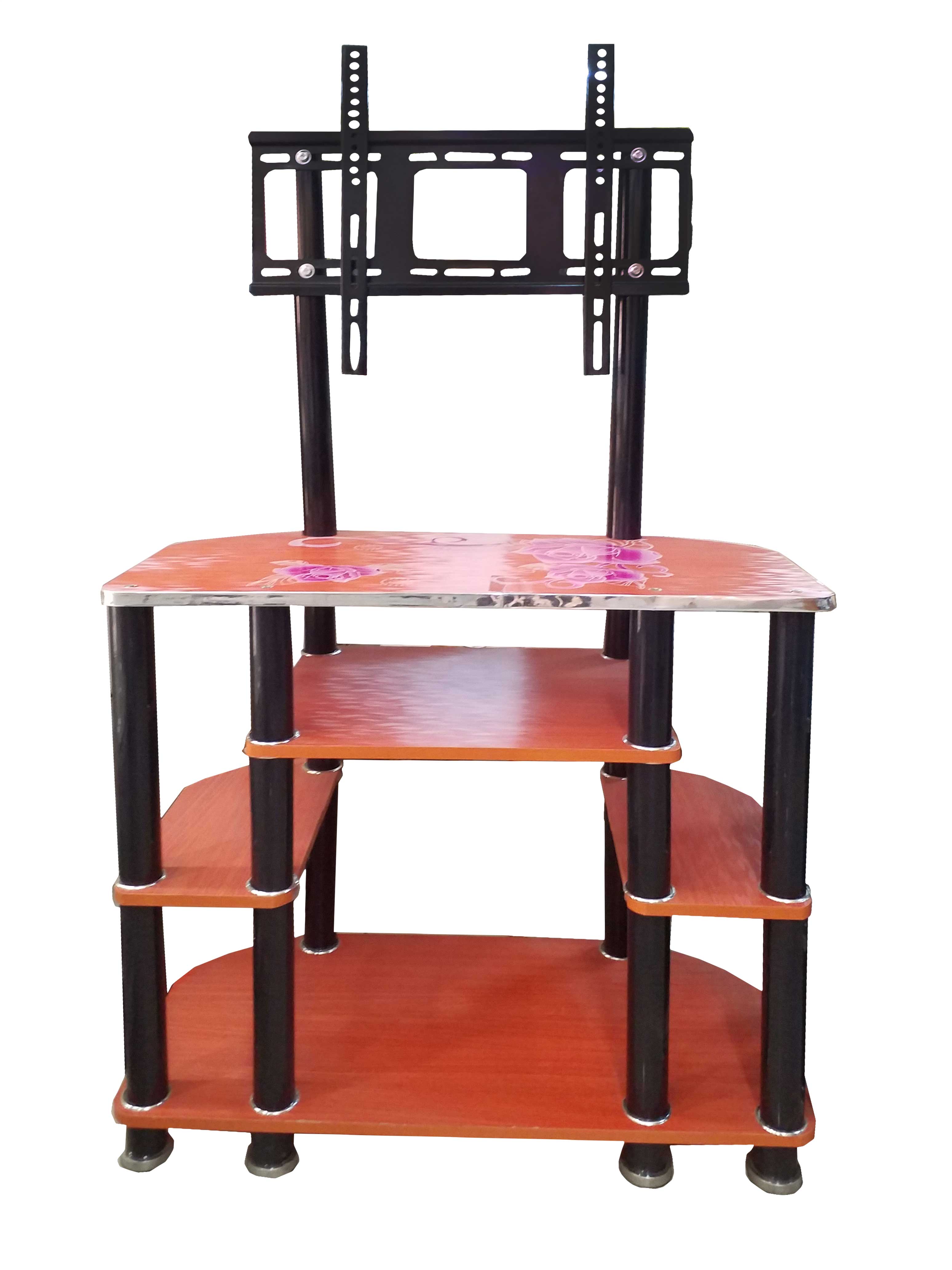 This tv rack has several areas to place your appliances 5 panels which are beautiful colors that will warm your house black hollow metal stand