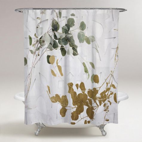 Inter Design Green Leaves Fabric Shower Curtain The leaves on this curtain would make for a wonderful addition