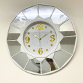 Modern Wall Clock with Mirrored Frame and Golden Numerals