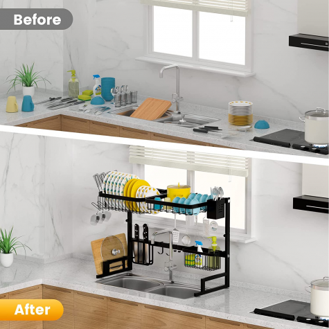 Dish Rack for Plates, Utensils, and Sink, Stainless Steel, Kitchen